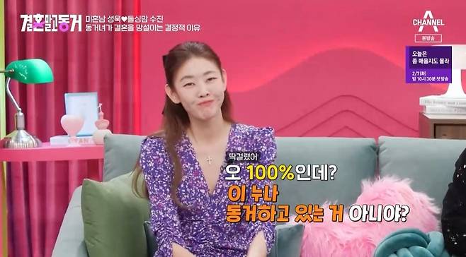 이용진은 "100%다. 이 누나 동거 하고 있는 거 아니냐. 왜 이렇게 잘 아냐. 결혼하고 싶으면 빨리 얘기해달라는 것"이라며 한혜진의 말에 공감했다.