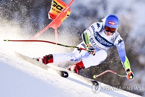 epaselect epa10450548 Mikaela Shiffrin of the United States in action during the Super-G run of the Women's Alpine Combined event at the FIS Alpine Skiing World Championships in Meribel, France, 06 February 2023. EPA/JEAN-CHRISTOPHE BOTT