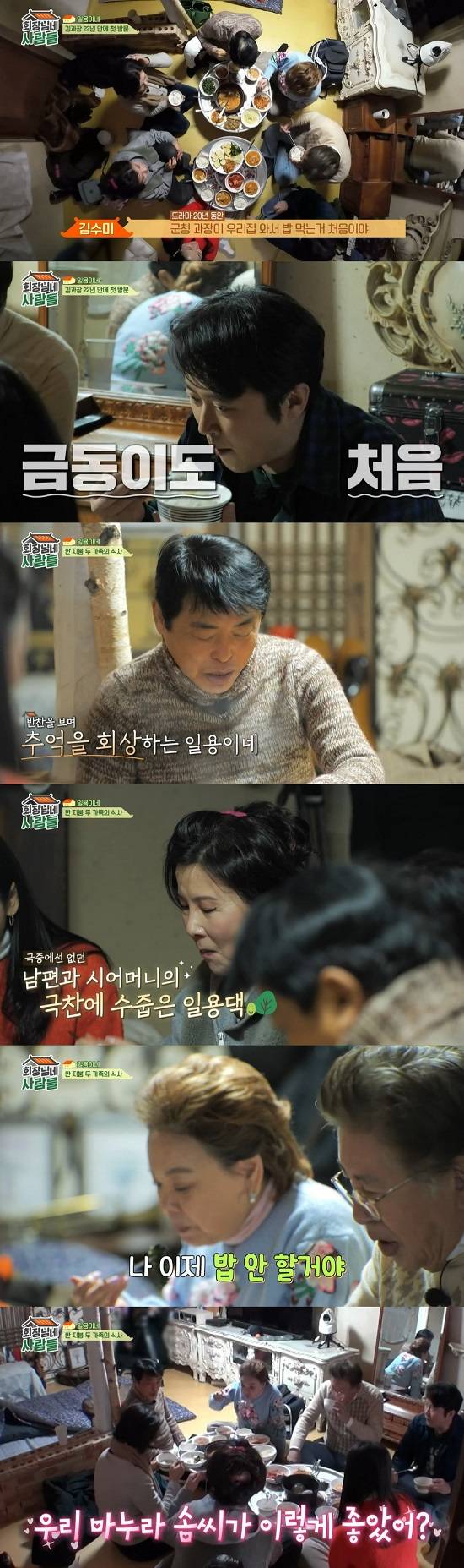 김수미는 "드라마 20년 동안 군청 과장이 우리 집 와서 밥 먹는 건 처음이다"라고 말해 놀라움을 안겼다.