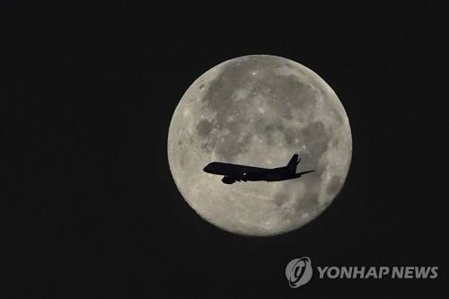 An airplane passes in front of a full moon as it descends for landing in Mexico City, early Monday, Feb. 6, 2023. (AP Photo/Marco Ugarte)