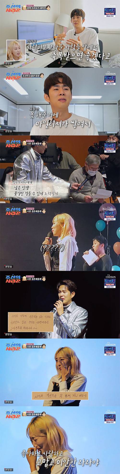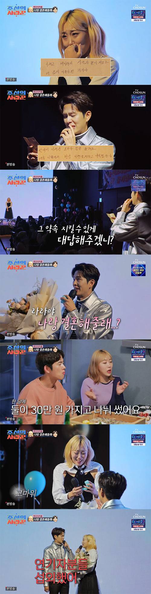 임라라는 "진짜 몰랐다"라며 눈물을 흘렸다. 이어 두 사람은 팬들 앞에서 키스를 했다.