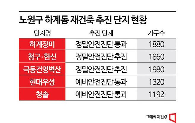 상계동 노후단지들이 잇달아 정밀안전진단을 통과한 데 이어 하계동에서도 최초로 재건축 정밀안전진단 문턱을 넘은 단지가 나오면서 일대 사업 추진에 탄력이 붙는 모습이다.