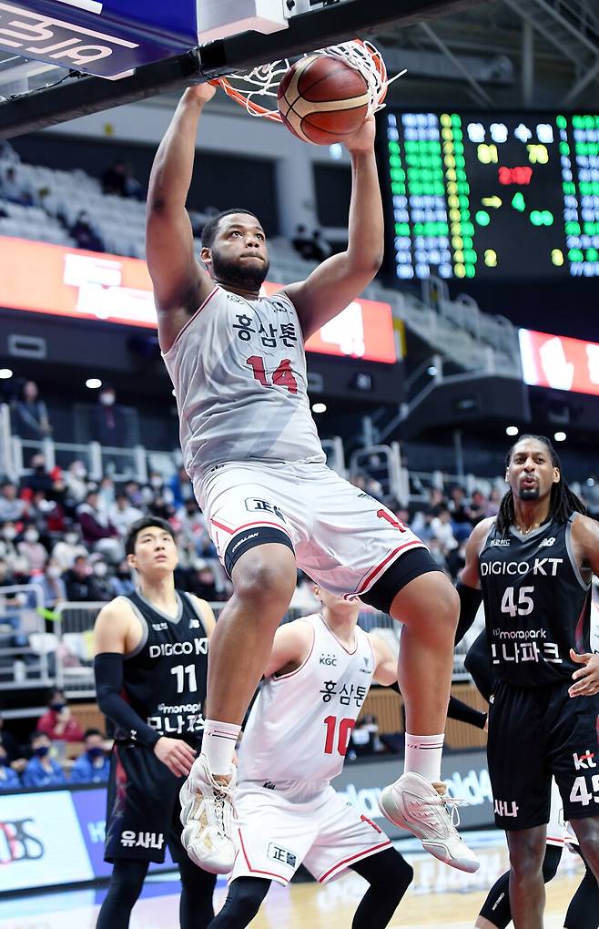 KGC가 오마리 스펠맨(203cm, F)의 원맨쇼로 리그 선두를 공고히 했다.