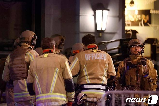 (브뤼셀 AFP=뉴스1) 김성식 기자 = 6일(현지시간) 벨기에 브뤼셀 유럽연합(EU) 집행위원회 건물 근처에 총기로 중무장한 용의자들이 숨어있다는 신고가 들어와 현지 경찰 특수부대가 도착했다. 2023.2.6.