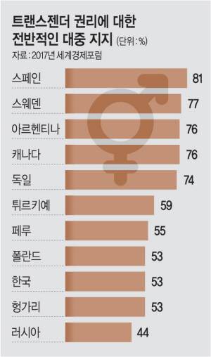◇핀란드·스페인 “나는 트랜스젠더” 선언만으로 인정… 시민단체 “환영” = 핀란드 의회는 지난 1일 트랜스젠더의 신분증상 성별 수정 절차 간소화 내용을 담은 일명 ‘진보적 권리법’을 찬성 113표, 반대 69표로 통과시켰다. 이로써 18세 이상 성전환자는 ‘자기 선언’ 과정만 거치면 법적으로 성별을 변경할 수 있게 됐다. 그동안 핀란드에선 전문가의 의학적, 정신과적 승인이 있어야만 성별을 바꿀 수 있었다. 유로뉴스는 “애초 미성년자인 16세 또는 17세로 대상을 확대하려 했었다”고 소개했다.