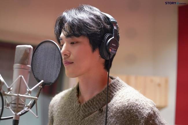 공개된 사진 속 김정현은 내추럴한 헤어스타일에 캐주얼한 니트로 편안한 무드를 자아낸다. 김정현은 헤드폰을 쓰고 가사에 깊이 집중하고 있어 연기뿐만 아니라 가창까지 열정을 다하는 모습을 엿볼 수 있다. 또한 김정현은 뛰어난 감정 몰입과 감미로운 목소리, 안정적인 가창력으로 곡의 완성도를 높여 현장 스태프들의 극찬을 받았다는 후문이다. (사진=스토리제이컴퍼니 제공)
