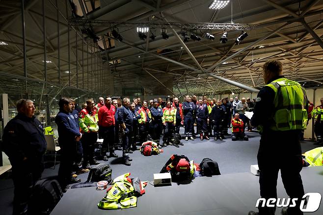(쾰른 로이터=뉴스1) 박재하 기자 = 6일(현지시간) 독일 국제구조대가 튀르키예(터키) 지진 구조 활동을 앞두고 쾰른 본 공항에서 준비를 마치고 있다. 튀르키예와 시리아에서 강진으로 사상자 수가 점점 불어나 세계 각국과 국제기구들이 지원팀을 급파하고 있다.