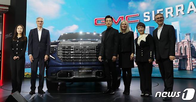 GMC의 플래그십 모델인 시에라는 국내 최초로 정식 출시되는 풀사이즈 픽업트럭으로 풀박스 프레임 보디와 강력한 퍼포먼스, 견인 능력, 편의성 및 실용성을 겸비한 것은 물론, 첨단 고급 편의사양을 적용하여 프리미엄 라이프스타일을 추구하는 고객층을 공략할 예정이다. 2023.2.7/뉴스1