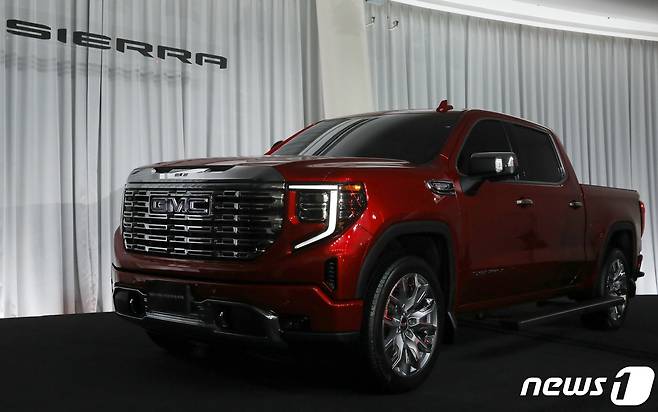GMC의 플래그십 모델인 시에라는 국내 최초로 정식 출시되는 풀사이즈 픽업트럭으로 풀박스 프레임 보디와 강력한 퍼포먼스, 견인 능력, 편의성 및 실용성을 겸비한 것은 물론, 첨단 고급 편의사양을 적용하여 프리미엄 라이프스타일을 추구하는 고객층을 공략할 예정이다. 2023.2.7/뉴스1
