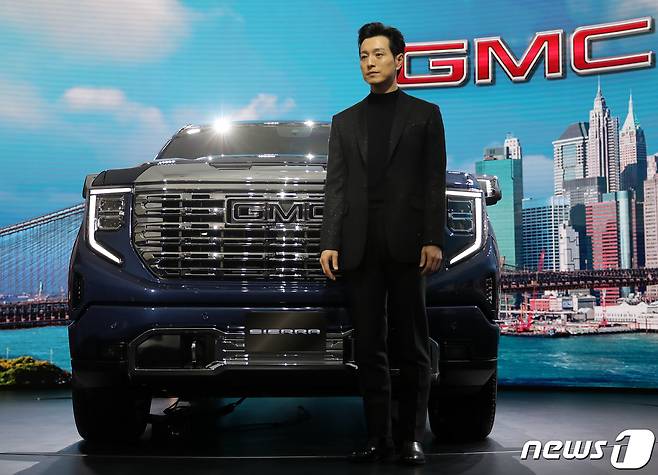 배우 정성일이 7일 오전 서울 서초구 세빛섬에서 열린 제너럴 모터스(GM)의 프리미엄 픽업·SUV 브랜드 'GMC'의 첫 번째 모델인 초대형 픽업트럭 시에라(Sierra) 출시행사에 참석해 차량과 함께 포즈를 취하고 있다.