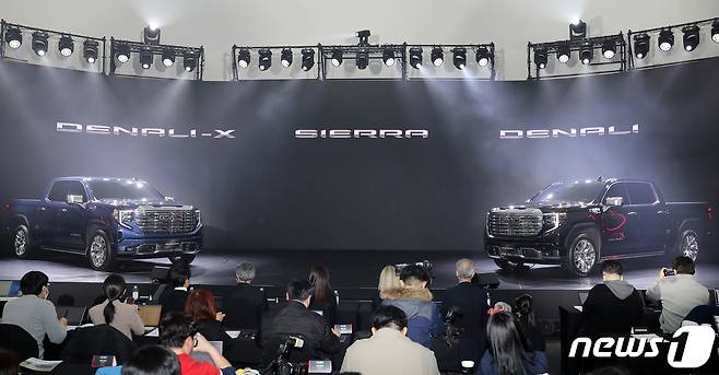 GMC의 플래그십 모델인 시에라는 국내 최초로 정식 출시되는 풀사이즈 픽업트럭으로 풀박스 프레임 보디와 강력한 퍼포먼스, 견인 능력, 편의성 및 실용성을 겸비한 것은 물론, 첨단 고급 편의사양을 적용하여 프리미엄 라이프스타일을 추구하는 고객층을 공략할 예정이다. 2023.2.7/뉴스1