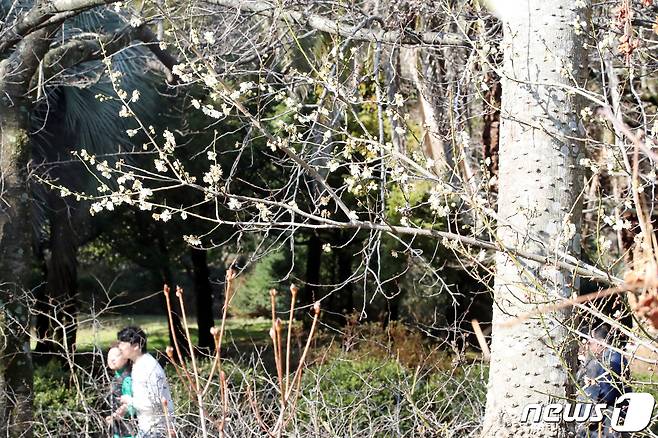 (제주=뉴스1) 오현지 기자 = 제주지역 낮 최고기온이 16도를 넘어선 7일 오후 제주시 한라수목원에 매화가 펴 시선을 사로잡고 있다. 2023.2.7/뉴스1