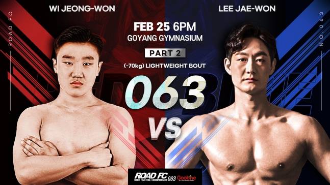 지난 6일 로드FC 정문홍 회장은 개인 유튜브 채널 '가오형 라이프'에서 오는 25일 고양체육관에서 개최되는 굽네 ROAD FC 063에서 대결할 이재원과 위정원(19·남양주 팀 피니쉬)의 대진을 공개했다.
