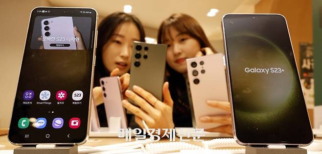 7일 서울 중구 KT광화문점에서 고객들이 사전 예약 판매를 시작한 삼성전자 스마트폰 신제품 갤럭시 S23 시리즈를 사용해보고있다. 2023.2.7 [김호영기자]