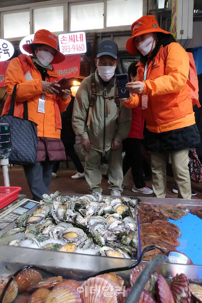 [이데일리 이영훈 기자] 제2기 디지털 안내사가 7일 오후 서울시 서대문구 영천시장에서 시민들에게 제로페이 이용법을 안내하고 있다.