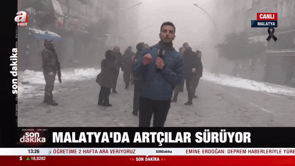 이에 따르면 튀르키예 A뉴스 기자 육셀 아칼란은 현장에서 지진 상황을 생방송으로 전하던 중이었다. 아칼란이 “큰 소리와 함께 두 번의 여진이 연속적으로 발생했다”며 시민들에게 다가가자 이 순간 굉음과 함께 건물이 붕괴되며 먼지에 휩싸였다.