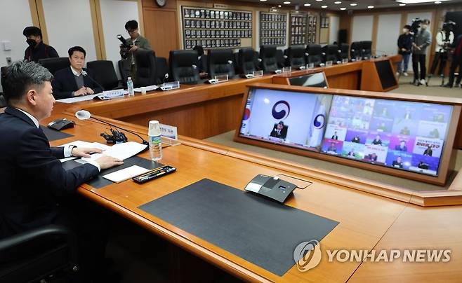 (서울=연합뉴스) 김승두 기자 = 한창섭 행안부 차관이 7일 정부서울청사에서 시도 기조실장들과 영상회의를 주재하며 지자체 공공요금 인상 자제를 요청하고 있다. 2023.2.7