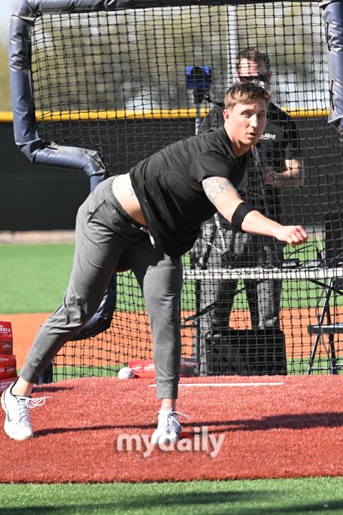 [마이데일리 = 메사 (미국 애리조나주) 곽경훈 기자] 미네소타 그리핀 잭슨이 7일 (한국시각) 미국 애리조나주 메사 벨뱅크파크에서 개인 훈련을 하고 있다.- ⓒ마이데일리(www.mydaily.co.kr). 무단전재&재배포 금지 -
