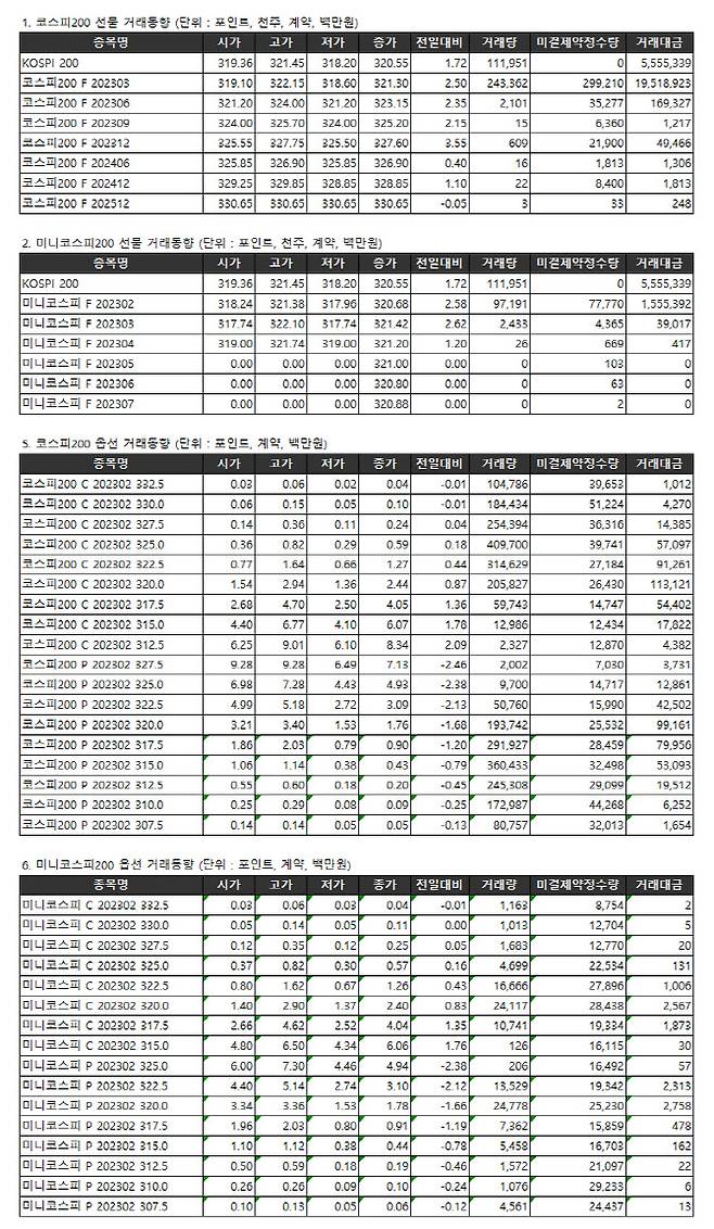 [표]거래소주가지수선물·옵션시세표(2/7)