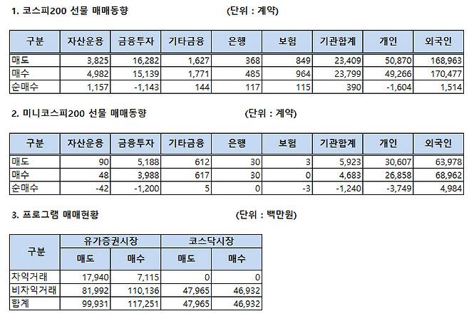 [표]주가지수선물 투자자별 매매동향(2/7)