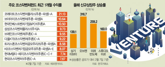 연초 증시가 활기를 되찾으면서 IPO 시장이 조금씩 되살아나는 분위기도 긍정적이다. 지난달 IPO를 진행한 4개의 새내기주는 공모가 대비 평균 171.15% 가량의 수익률을 올렸다. 이날 코스닥 시장에 신규 상장사 스튜디오미르 역시 ‘따상(공모가의 2배로 시초가를 형성한 뒤 상한가)’을 기록했다. 황세운 자본시장연구원 선임연구위원은 “정부가 주도하는 이른바 ‘관제 펀드’는 대부분 흐지부지 끝나지만 코벤펀드에 대한 관심은 이어질 것으로 본다”며 “코스닥 시장 활성화와 벤처기업 육성은 국가의 지속적인 과제이기 때문”이라고 말했다.