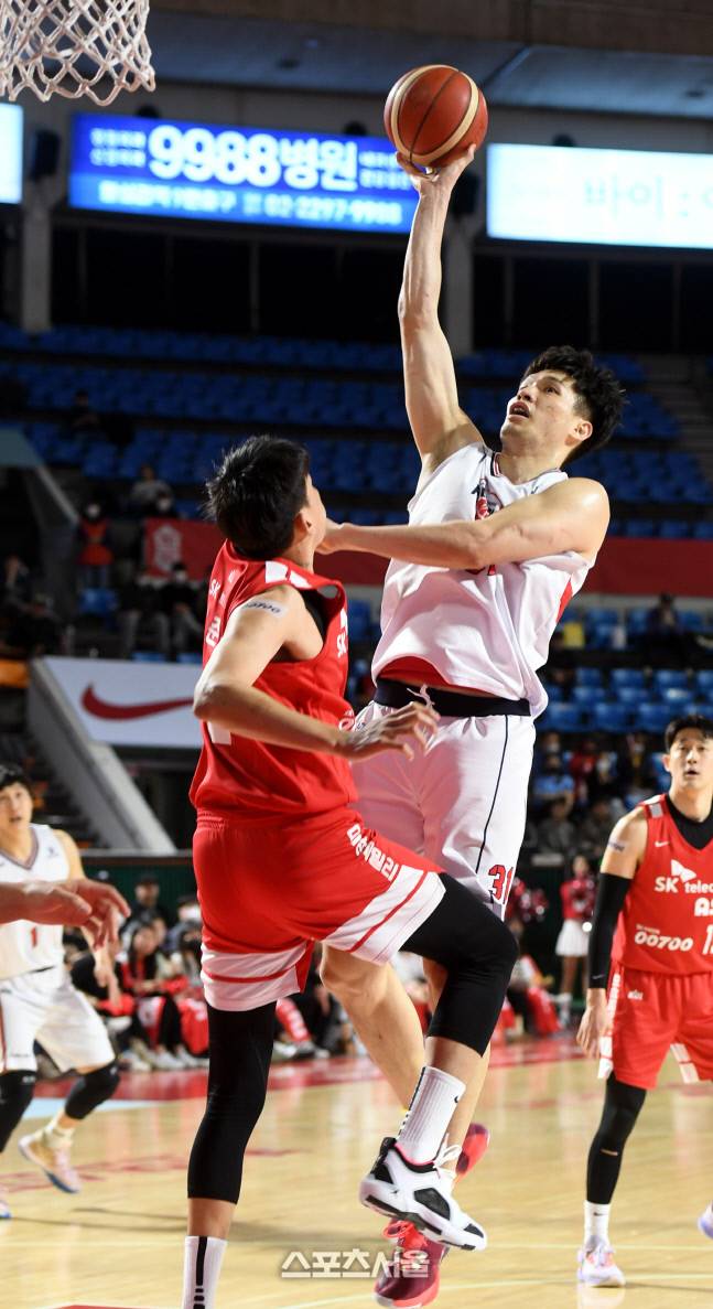 울산 현대모비스 장재석이 7일 잠실학생체육관에서 열린 2022-2023 프로농구 서울 SK와 경기에서 슛을 시도하고 있다.