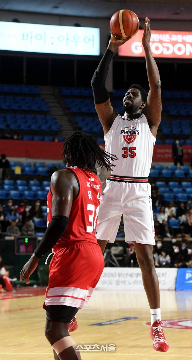 울산 현대모비스 심스가 7일 잠실학생체육관에서 열린 2022-2023 프로농구 서울 SK와 경기에서 슛을 시도하고 있다.