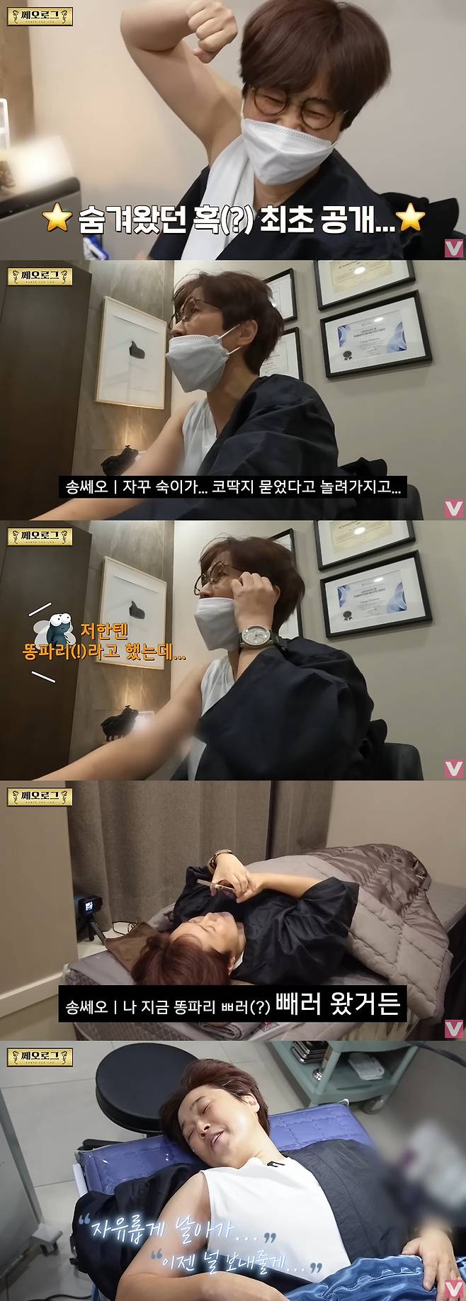 이후 송은이는 숨겨왔던 겨드랑이 혹을 공개했다. 송은이는 "자꾸 숙이가 코딱지 묻었다고 놀린다"고 했고, 의사는 "저한테는 똥파리라고 했다"고 말해 폭소를 터트렸다.
