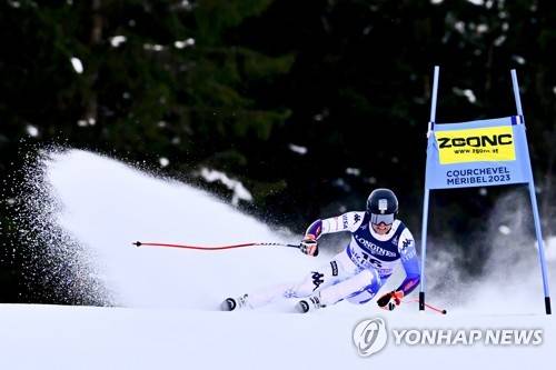 epa10452273 Ryan Cochran-Siegle of the United States in action during the Super-G run of the Men's Alpine Combined event at the FIS Alpine Skiing World Championships in Meribel, France, 07 February 2023. EPA/JEAN-CHRISTOPHE BOTT