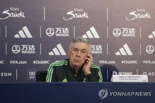 epa10452309 Real Madrid's head coach Carlo Ancelotti attends a press conference at the Sports Complex Prince Moulay Abdallah in Rabat, Morocco, 07 February 2023. Real Madrid will face Al-Ahly in a FIFA Club World Cup semifinal match on 08 February 2023. EPA/Jalal Morchidi