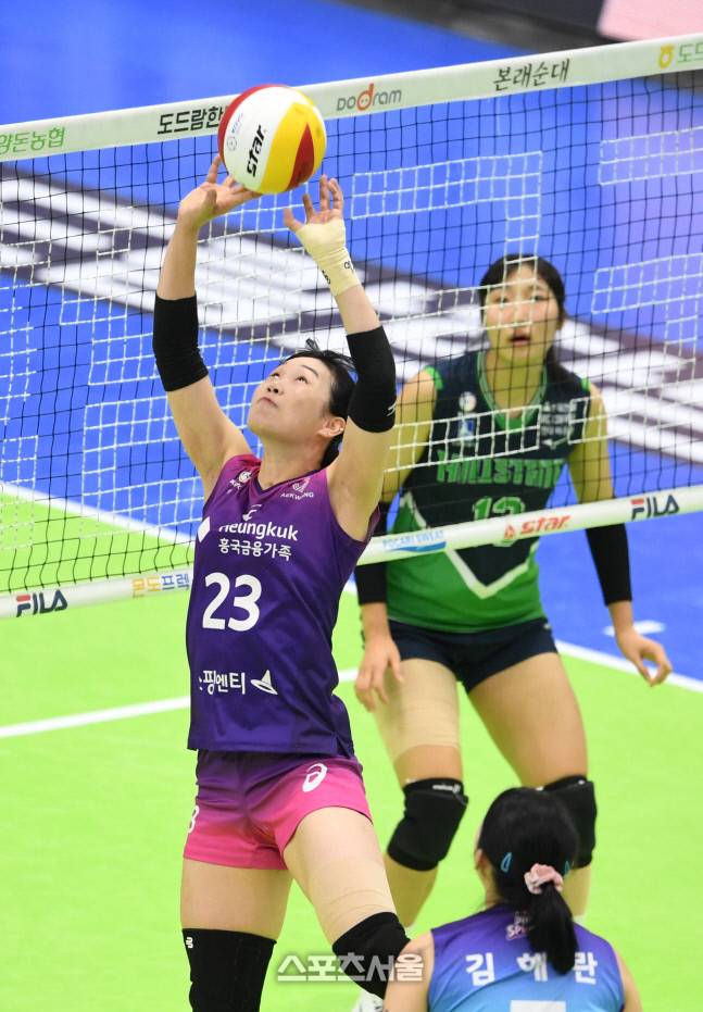 흥국생명 세터 이원정이 7일 수원체육관에서 열린 2022-2023 V리그 현대건설과의 경기에서 토스를 올리고 있다. 2023. 2. 7.