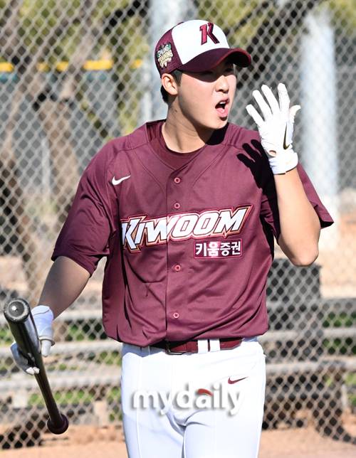 [마이데일리 = 스코츠데일(미국 애리조나주) 키움 장재영이 7일 (한국시각) 미국 애리조나 솔트리버 필즈 앳 토킹스틱에서 진행된 '2023 스프링캠프'에서 배팅 훈련을 하고 있다.- ⓒ마이데일리(www.mydaily.co.kr). 무단전재&재배포 금지 -