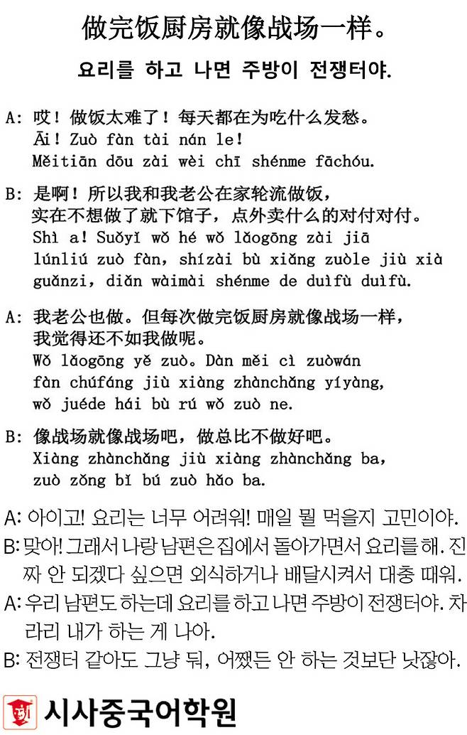 [시사중국어학원의 리얼 중국어 회화] 요리를 하고 나면 주방이 전쟁터야.