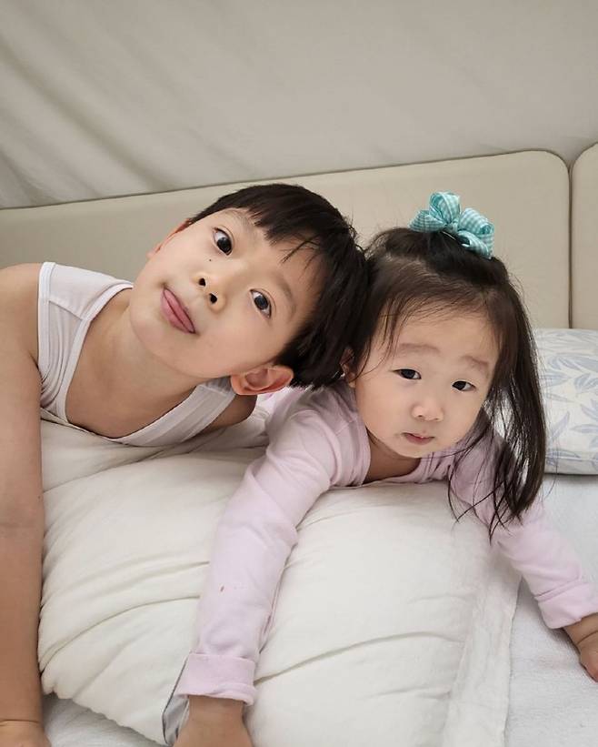 공개된 사진에는 정경미 윤형빈 부부의 아들, 딸 모습이 담겨있다.