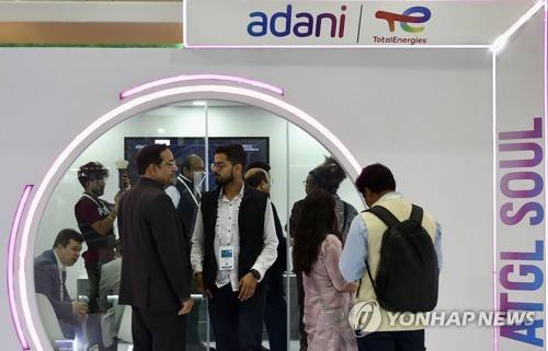epa10452348 Visitors get information at adani exhibition stall the day two of 'India Energy Week 2023' in Bangalore, India, 07 February 2023. The India Energy Week (IEW) aims to showcase the country's rising prowess as an energy transition powerhouse and Prime Minister Narendra Modi's pledge at COP26 to cut India's emissions to net-zero by 2070. The three-day event will run from 06 to 08 February 2023. EPA/JAGADEESH NV
