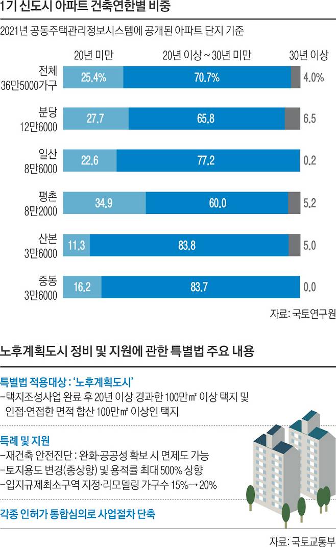 ‘노후계획도시 정비 및 지원에 관한 특별법’의 핵심은 ‘노후계획도시’의 범위를 ‘택지조성사업 완료 이후 20년 이상 경과한 100만㎡ 이상의 택지’로 정했다는 점이다.