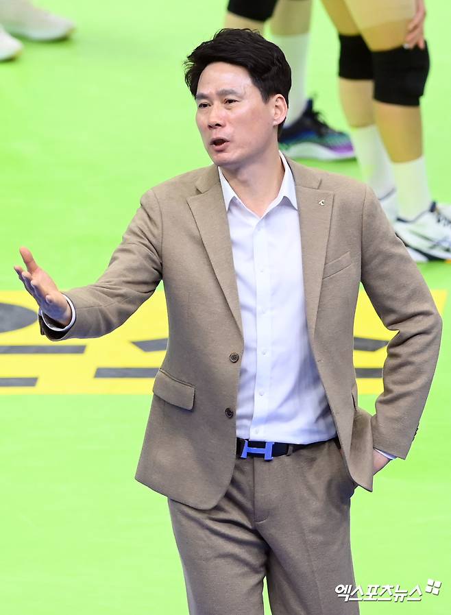 현대건설 강성형 감독이 아쉬움을 토로하고 있다.