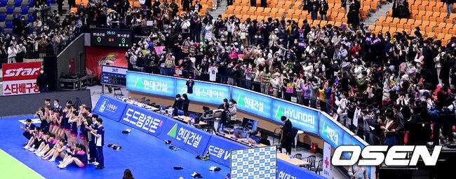 경기를 마치고 흥국생명 선수들이 팬들의 응원 속 승리 기념사진을 찍고 있다. 2023.02.07 / dreamer@osen.co.kr