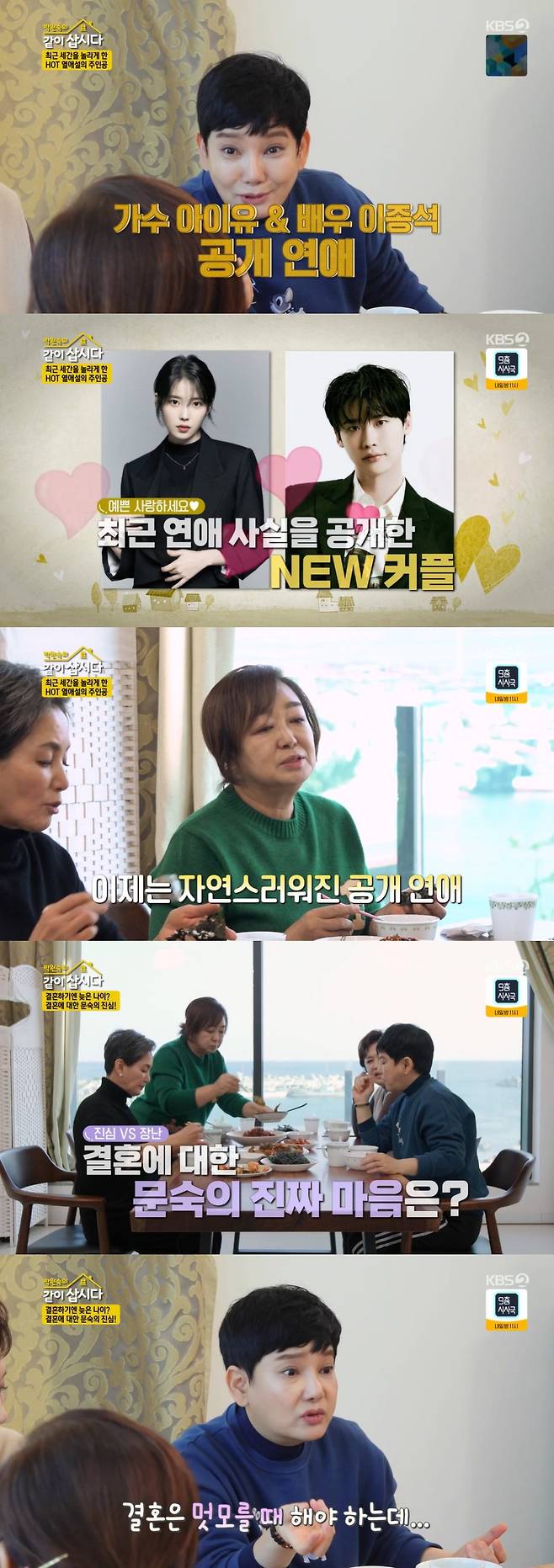 이날 아침 식사를 하던 안문숙은 최근 공개 연애로 화제가 된 이종석, 아이유 커플을 언급했다.