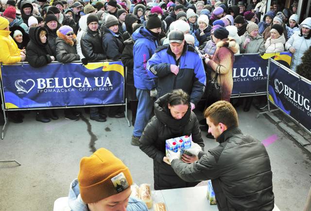 [포토] 음식 배급받는 우크라이나 주민들