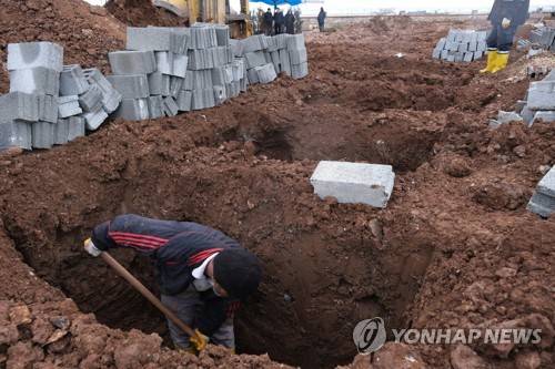 epa10452519 Turkish workers dig graves for the victims of an earthquake, at a cemetery in Diyarbakir, Turkey, 07 February 2023. More than 4,000 people were killed and thousands more injured after a major 7.8 magnitude earthquake struck southern Turkey and northern Syria on 06 February. Authorities fear the death toll will keep climbing as rescuers look for survivors across the region. EPA/DENIZ TEKIN
