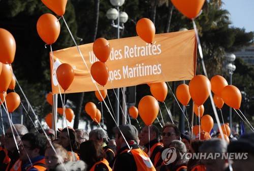 French trade unions demonstratation against pension reform in Nice