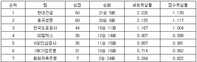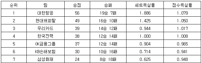 [프로배구 중간순위] 7일