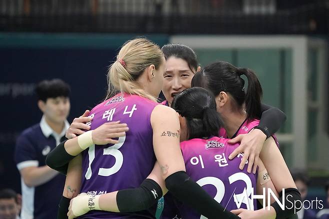 (MHN스포츠 수원, 박태성 기자) 7일 경기도 수원시 장안구 수원실내체육관에서 프로배구 '도드람 2022~23 V리그 여자부 5라운드' 승점 60(21승 4패) 1위 현대건설 힐스테이트와 승점 57(19승 6패) 2위 흥국생명 핑크스파이더스 경기가 열렸다.