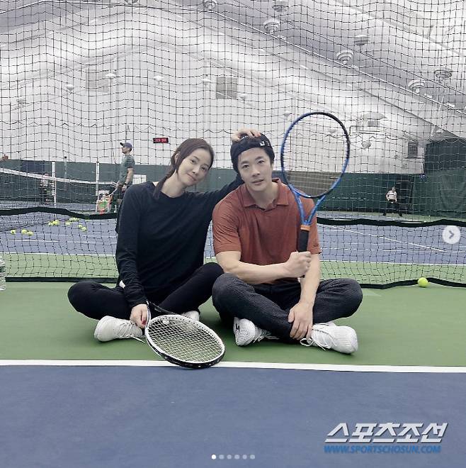 공개된 사진 속 손태영과 권상우는 함께 테니스를 치고 맛있는 식사를 한 모습이다.