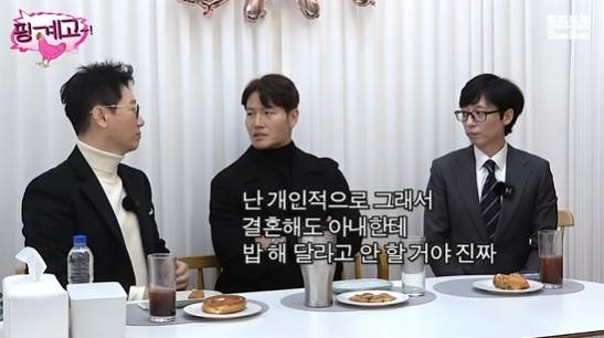 [OSEN=하수정 기자] 김종국이 결혼은 하고 싶다며, 아내에게 밥도 해달라고 하지 않겠다고 했다.
