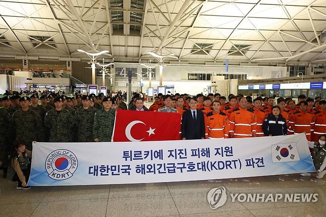 정부는 외교부, 소방청, 코이카(한국국제협력단), 국방부 등으로 구성된 110여 명의 긴급구호대를 튀르키예로 파견한다. 2023.2.7