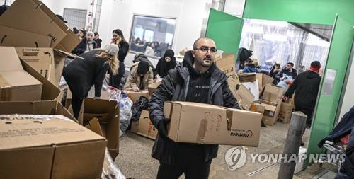 epa10452622 Members of the Turkish community gather humanitarian aid for Tukish and Syrian earthquake victims at a collecting point in Berlin, Germany, 07 February 2023. Thousands of people were killed and several thousands more injured after a major 7.8 magnitude earthquake struck southern Turkey and northern Syria on 06 February. Authorities fear the death toll will keep climbing as rescuers look for survivors across the region. Germany has the largest Turkish community in the world. EPA/FILIP SINGER