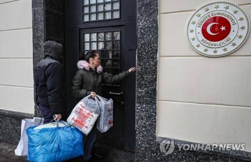 People donate humanitarian aid for earthquake victims at Turkey's embassy in Moscow