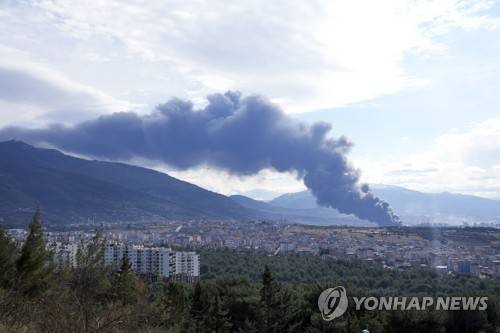 Smoke rises from burning containers at the port in the earthquake-stricken town of Iskenderun, southern Turkey, Tuesday, Feb. 7, 2023. A powerful earthquake hit southeast Turkey and Syria early Monday, toppling hundreds of buildings and killing and injuring thousands of people. (AP Photo/Hussein Malla)